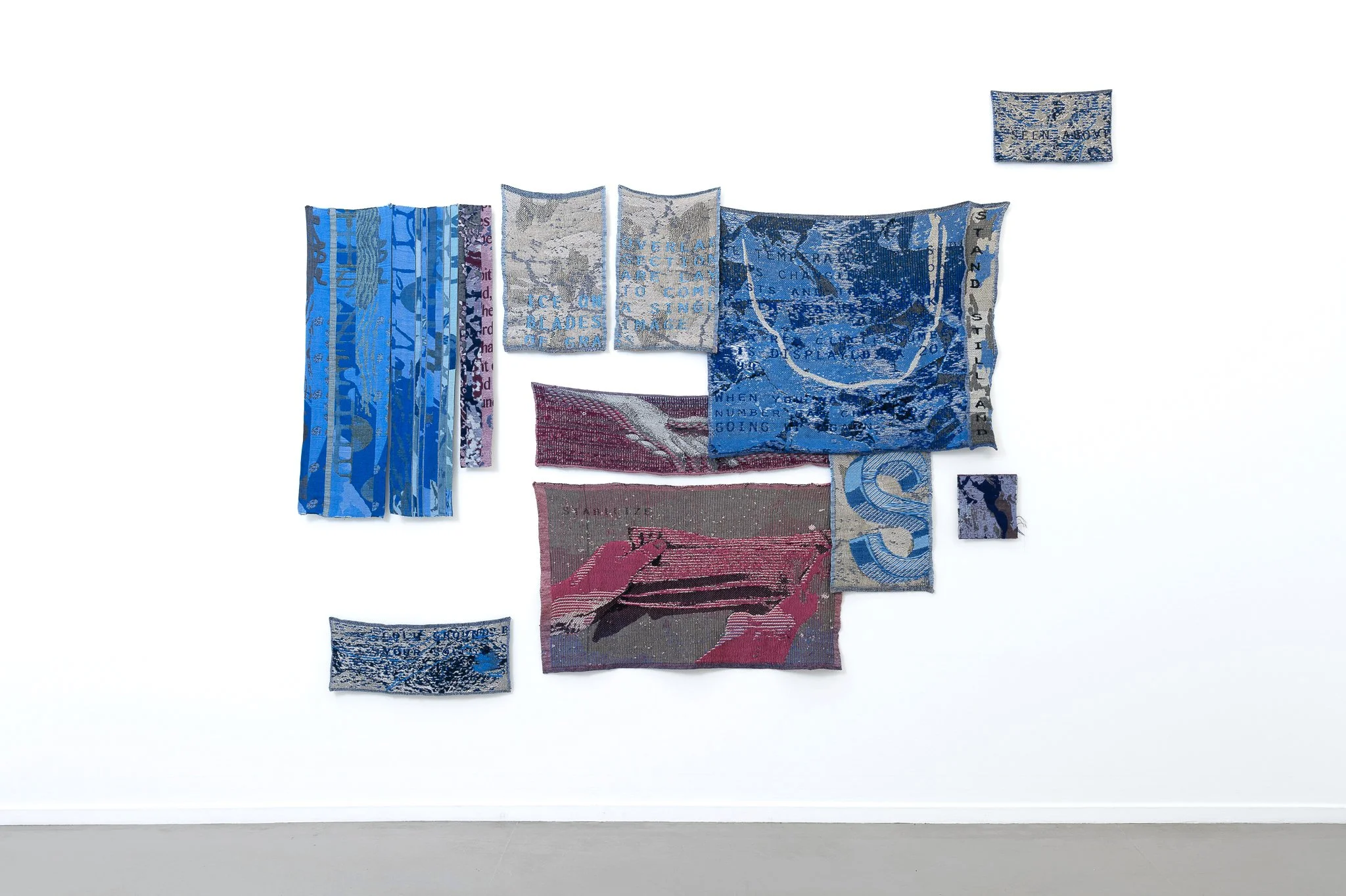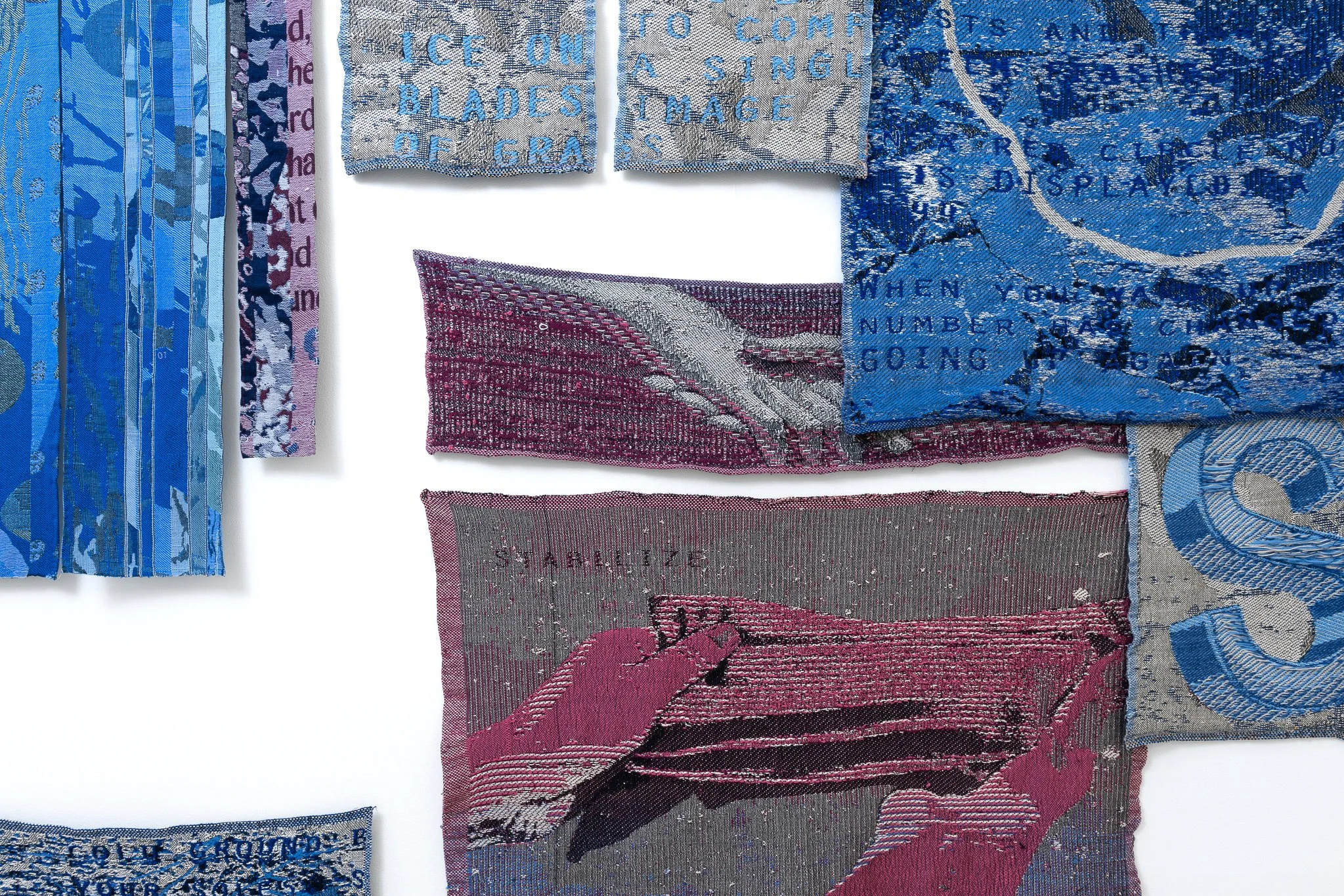 installation of digital jacquard tapestries with embroidery in cotton and wool, dimensions variable, 2019