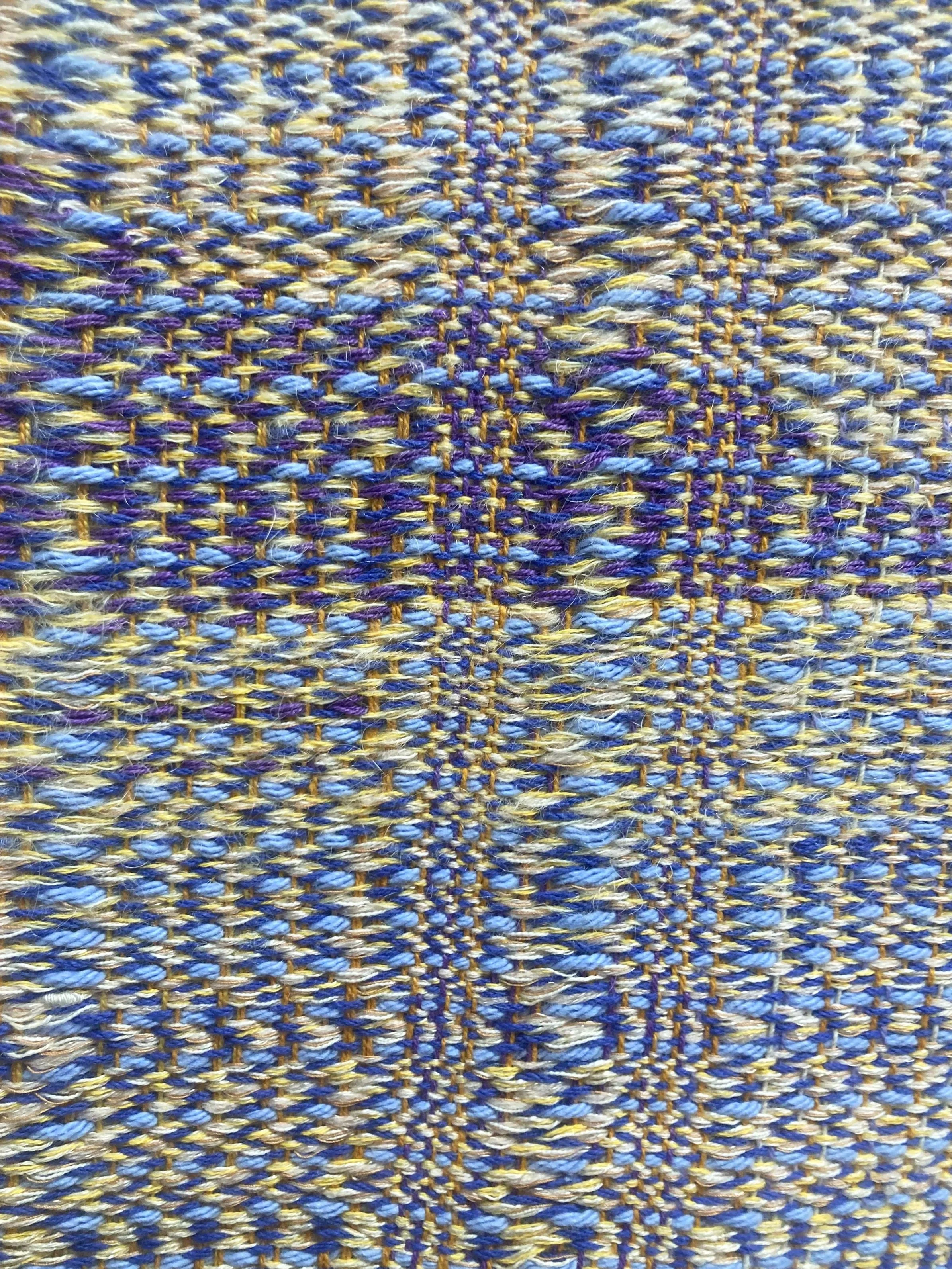 Optics, handwoven tapestry made using an overshot pattern, 16" x 14", 2024
