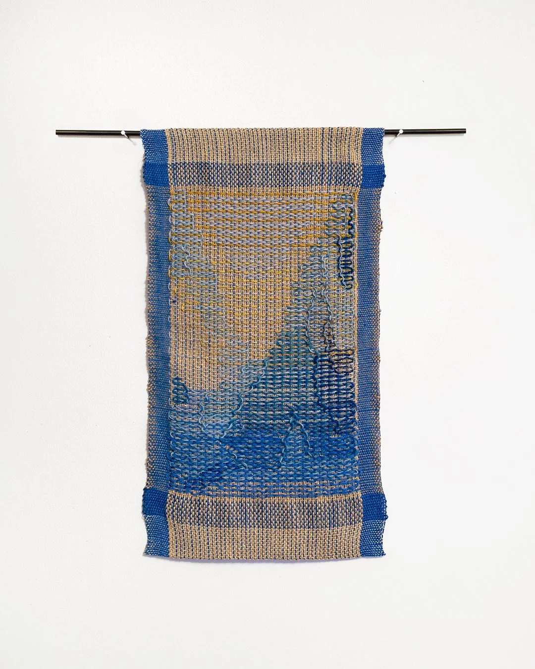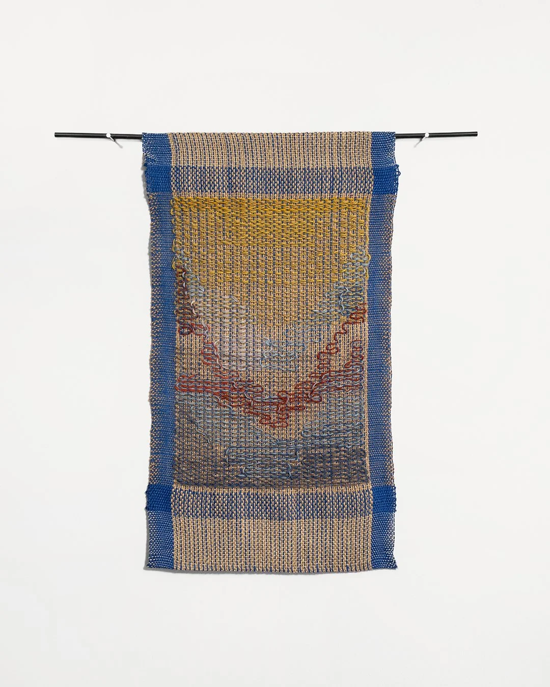 Inverse, handwoven tapestry in linen, cotton, and wool fibers, 8 x 15.5", 2025