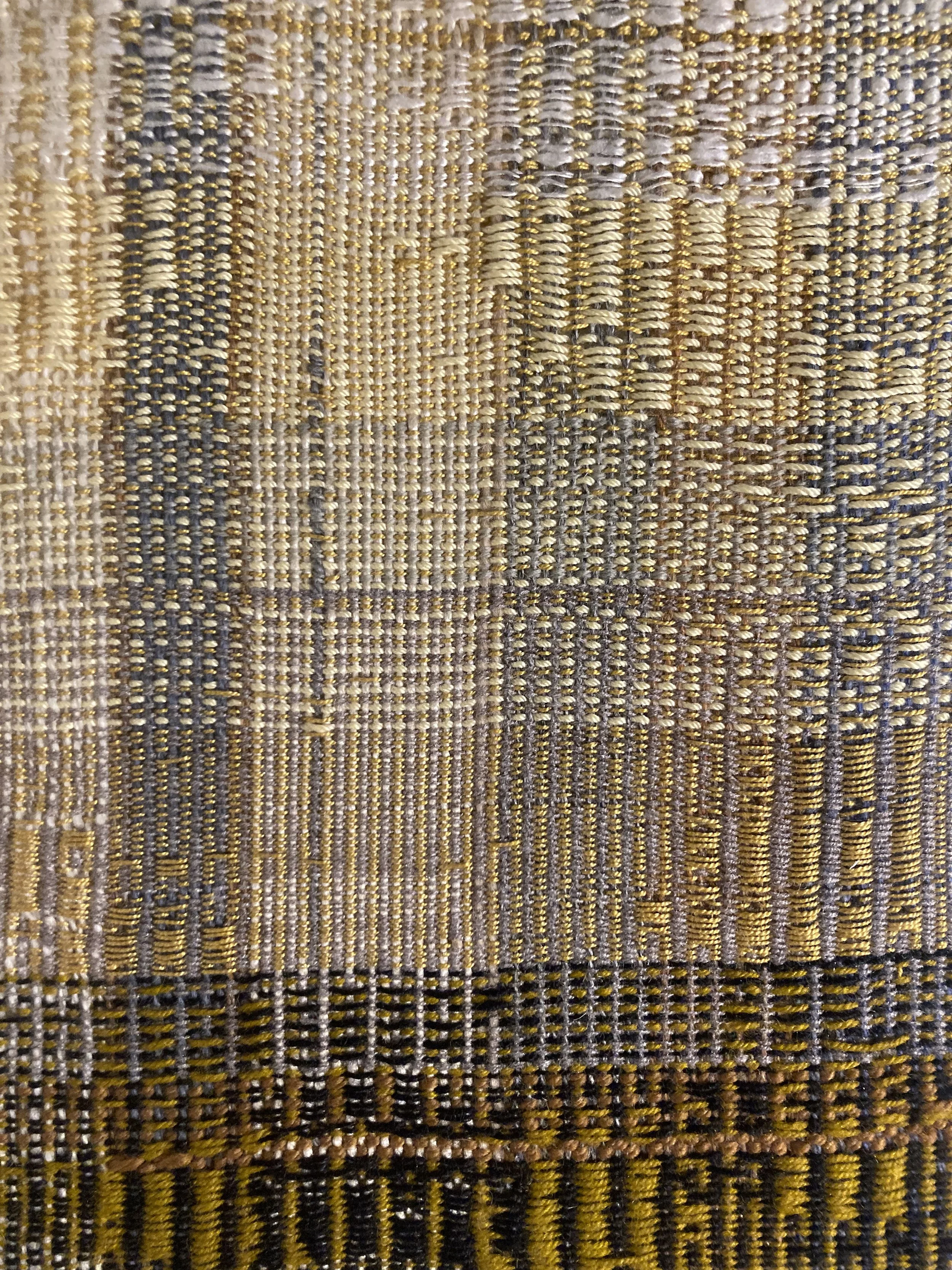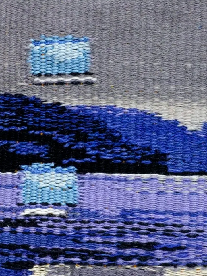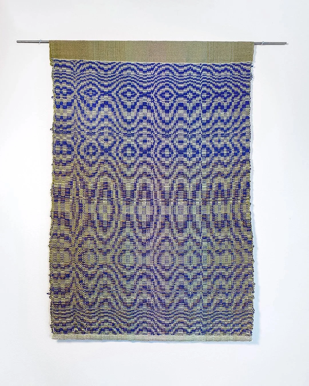 Dither, handwoven tapestry in mixed fiber, 31.25 x 21”, 2023