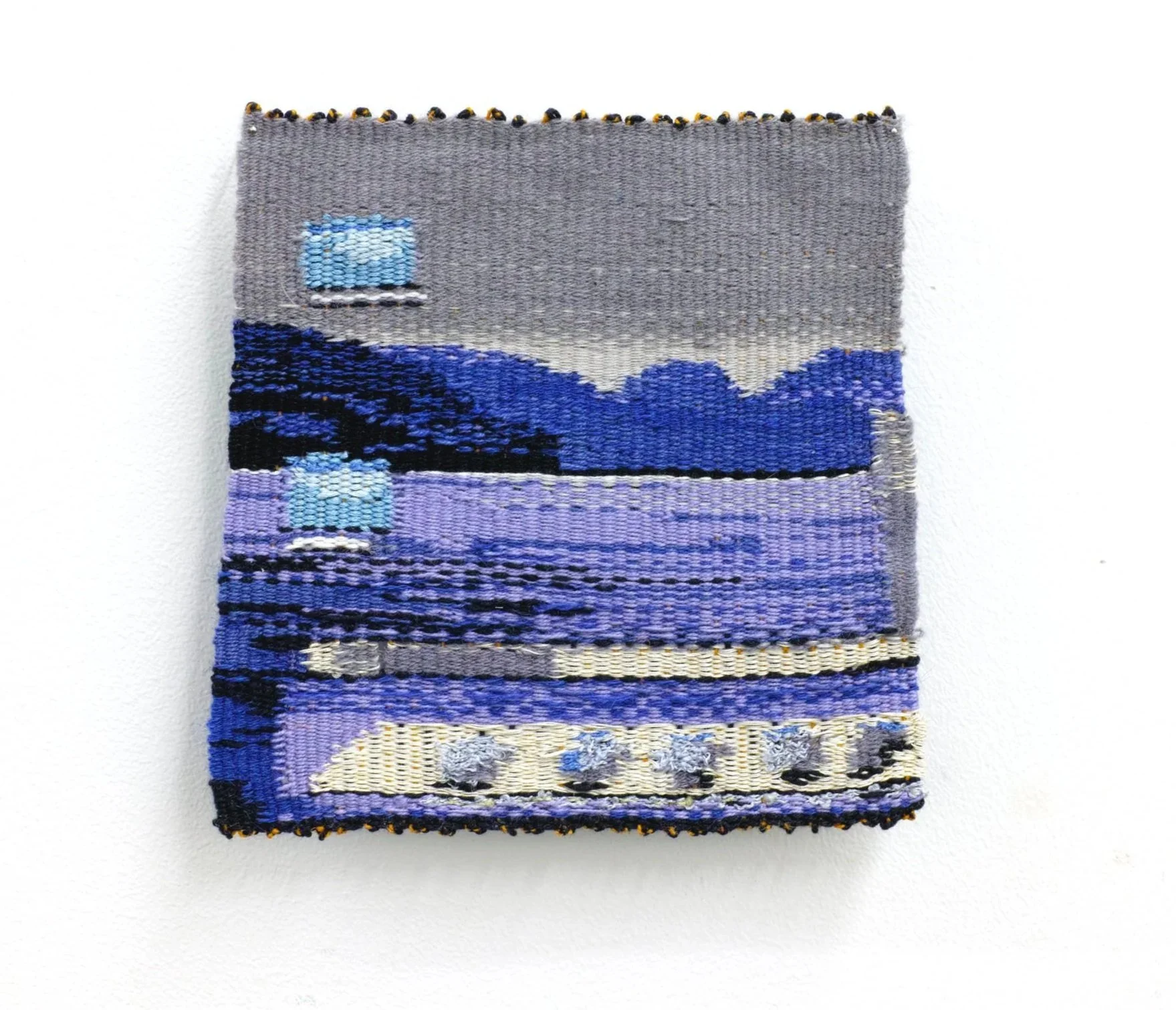 A Darkening Sky, handwoven tapestry made using the Theo Moorman technique in various fibers, 8 x 10", 2025