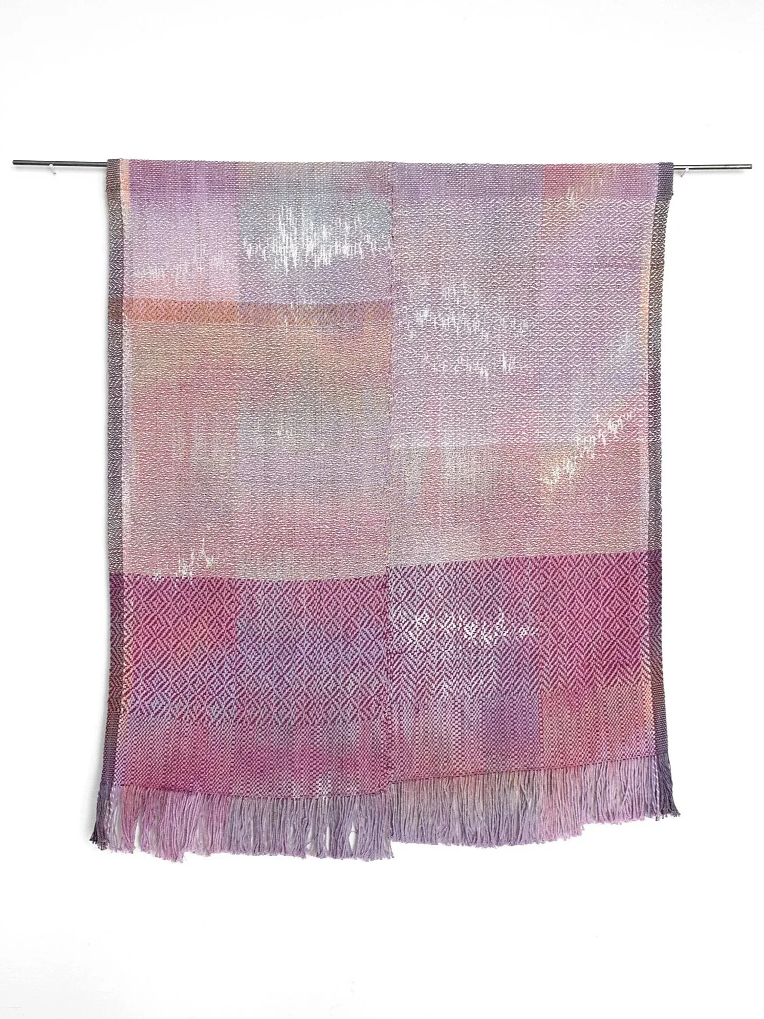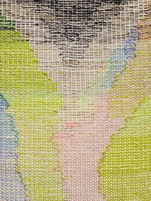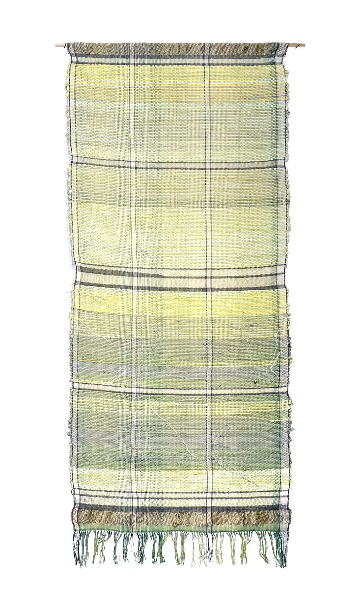 Meadow View, hand-dyed reclaimed cotton with a mixed cotton warp, 27 x 67”, 2023