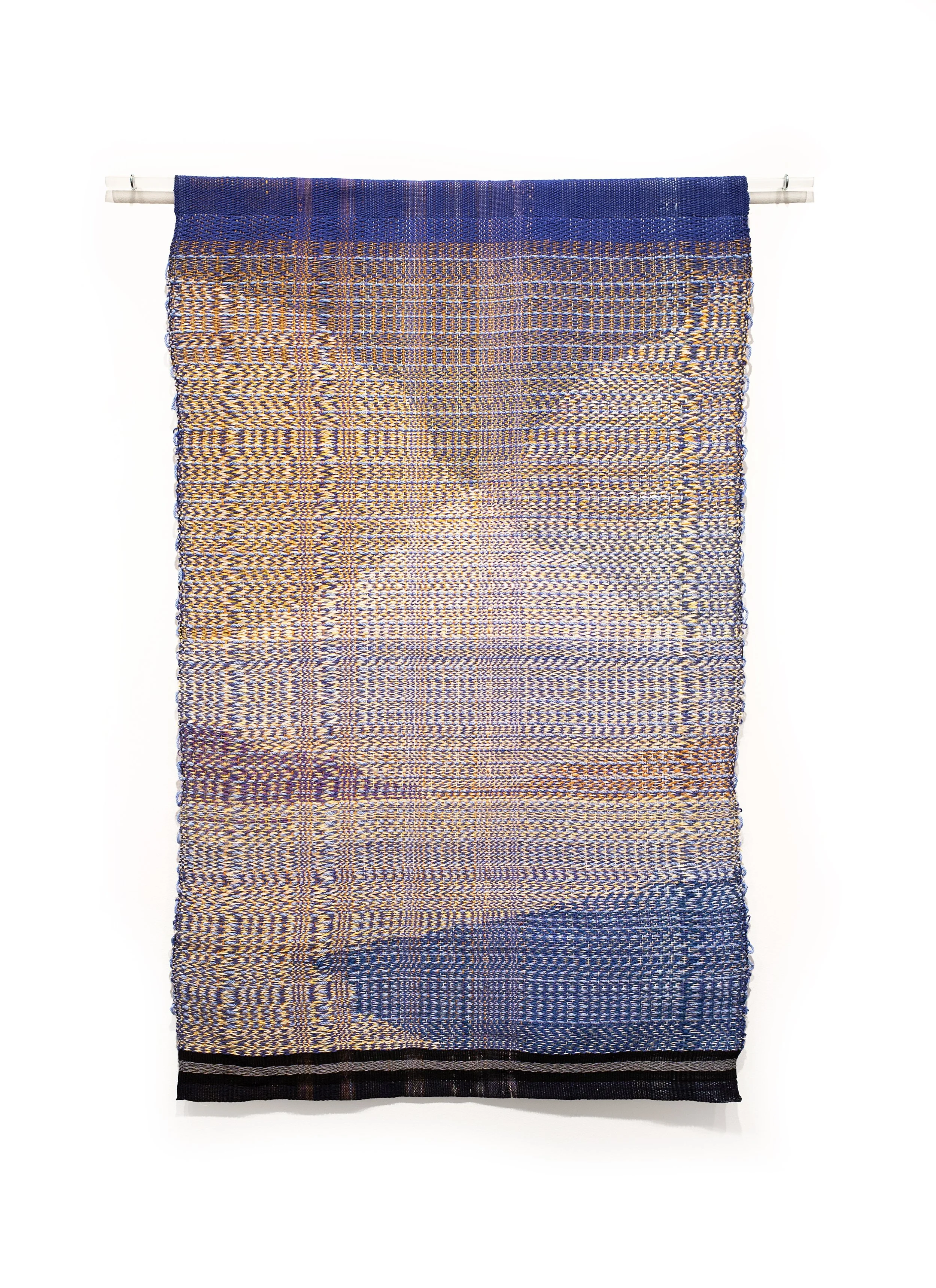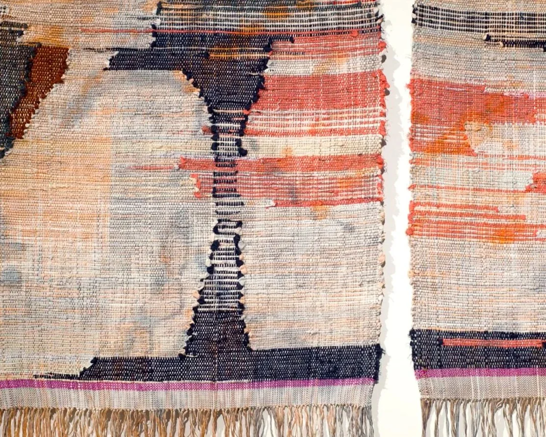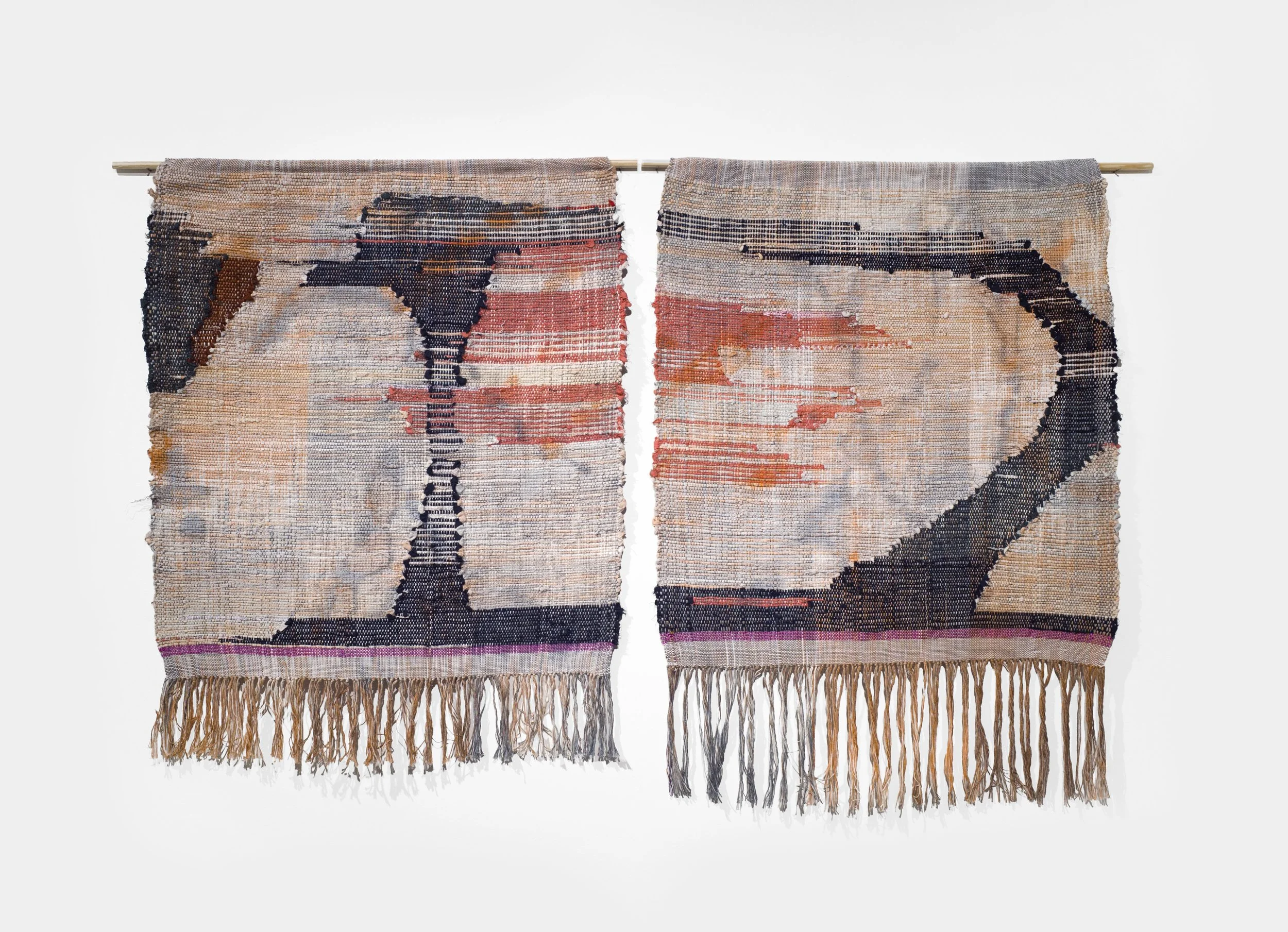Slant View Diptych, hand-dyed reclaimed cotton and linen weft with hand-dyed cotton warp, 53 x 37”, 2023