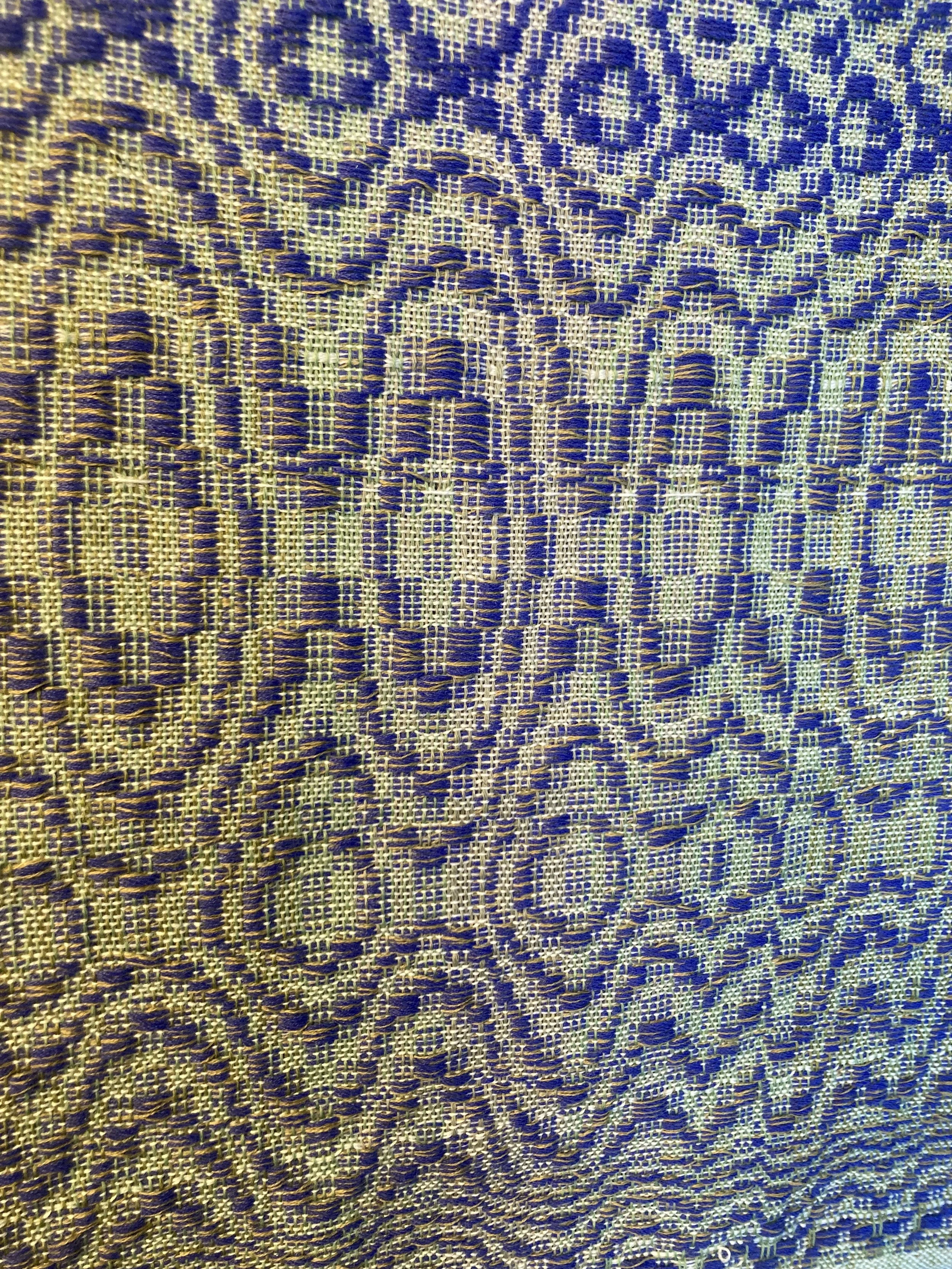Lupine Variation, handwoven digital jacquard tapestry in cotton and wool, 19 x 41”, 2021