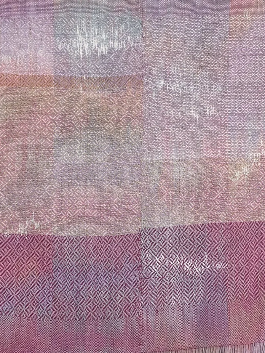 Rose View, handwoven tapestry in mixed fiber weft and hand-dyed warp, 26.5 x 21”, 2025