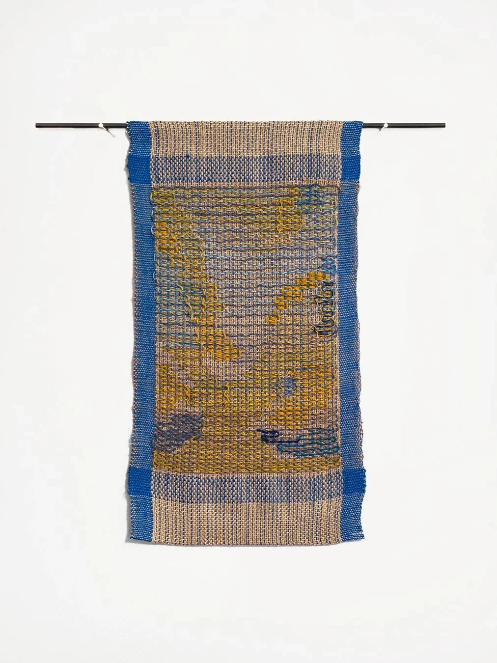 Butter, handwoven tapestry in linen, cotton, and wool fibers, 8 x 15.5", 2025