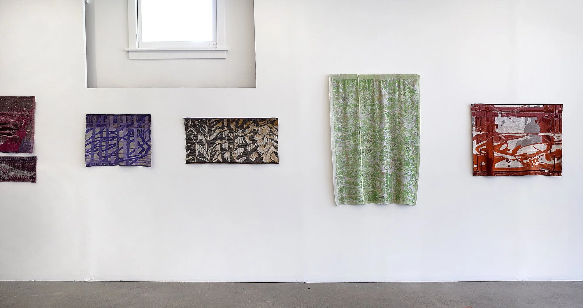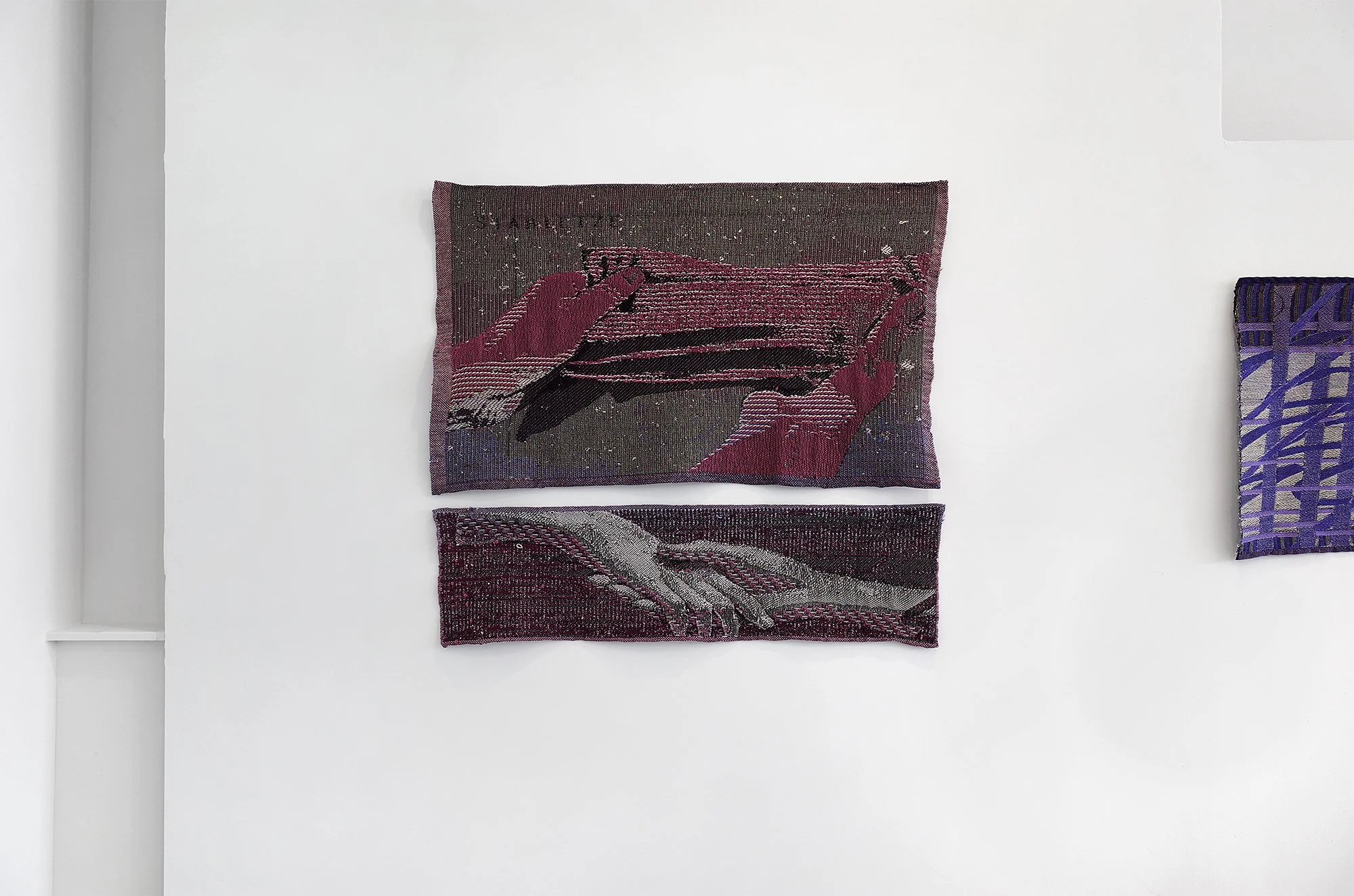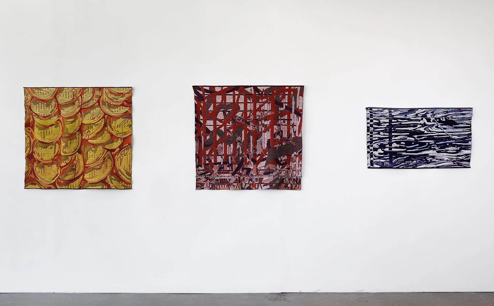 Stabilize, handwoven digital jacquard tapestry in cotton and wool with embroidery, 23.5 x 41”, 2019