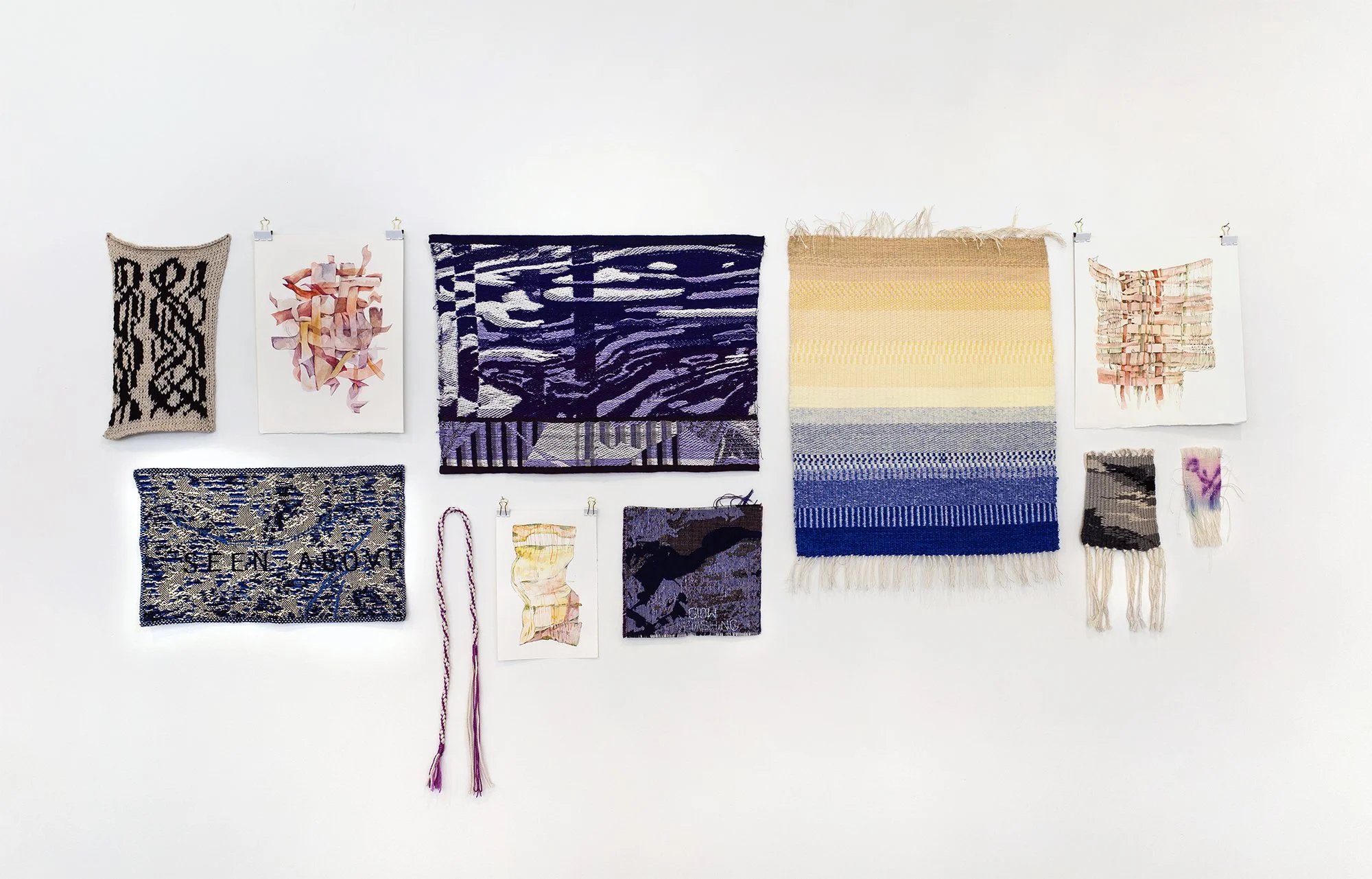 Wood draws together heritage weaving techniques with her own very contemporary language of aesthetics. She composes digital paintings from photography and drawn imagery. After manipulating and extending an image, she translates it into a pixelated file ready for a computerized loom.